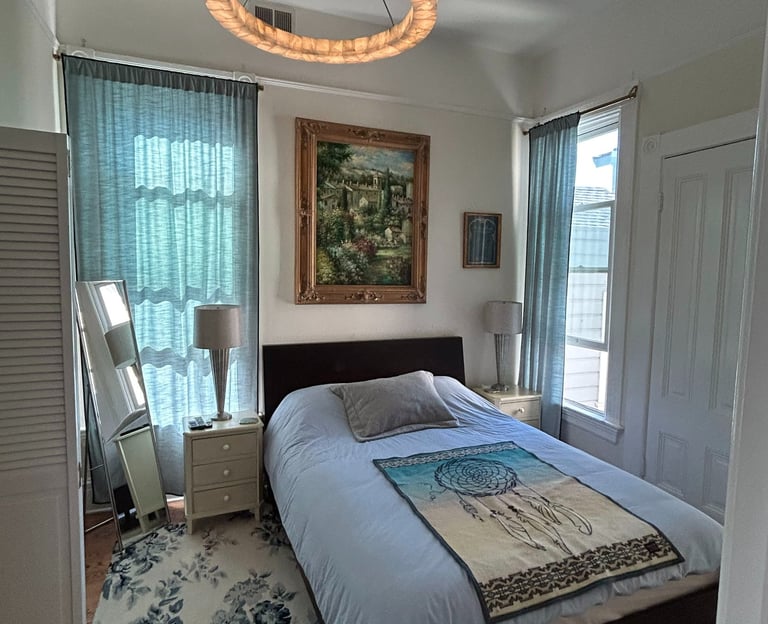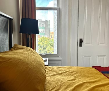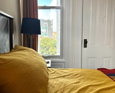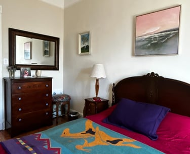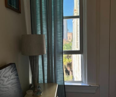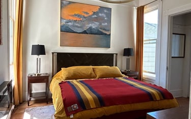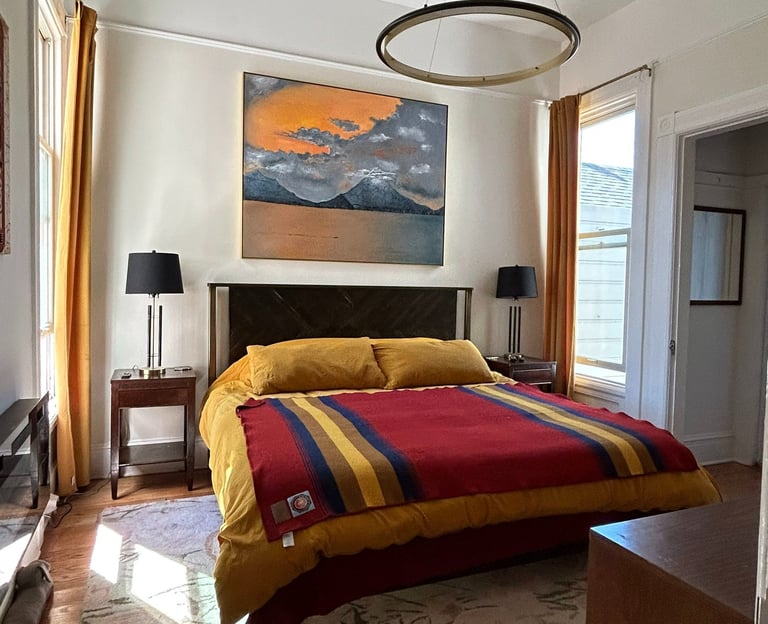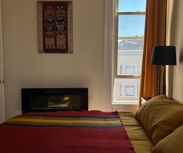 Enjoy the comfort of our Double Room with views of 17th Street, Twin Peaks, and Sutro Tower with a full bed, smart television and electric fireplace.